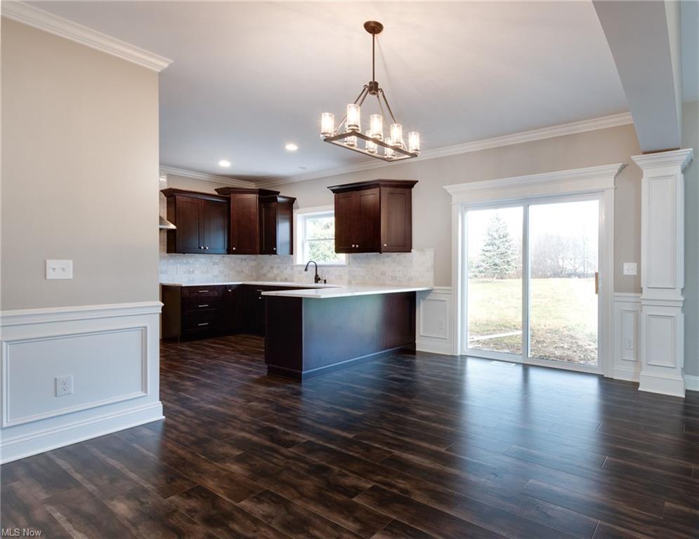 Eat-in kitchen features granite countertops with counter seating, stainless steel appliances and is open to the great room and dining areas.