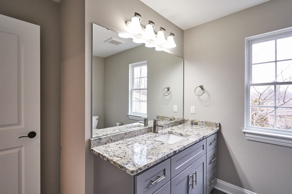 All bathrooms feature granite countertops. Convenient first-floor half bath. Large basement with 9-foot ceilings is plumbed for a bath and could provide additional living space, hobby area, or storage.